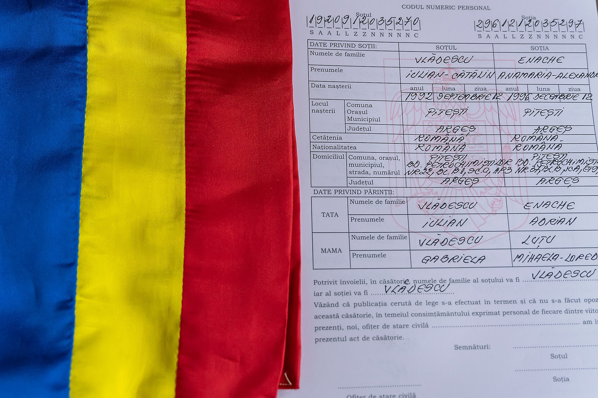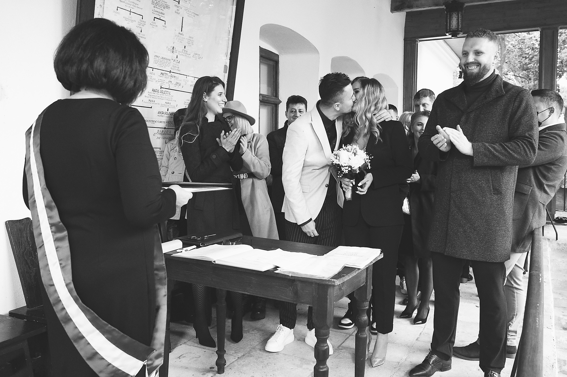 Ceremonia a avut loc în sala impunătoare a Muzeului Golesti, unde atmosfera solemnă a fost completată de prezența unor exponate valoroase, martori ai trecutului. AnaMaria și Catalin, îmbrăcați în ținute elegante, au rostit jurămintele lor de iubire în fața autorităților, subliniind astfel angajamentul lor unul față de celălalt.
